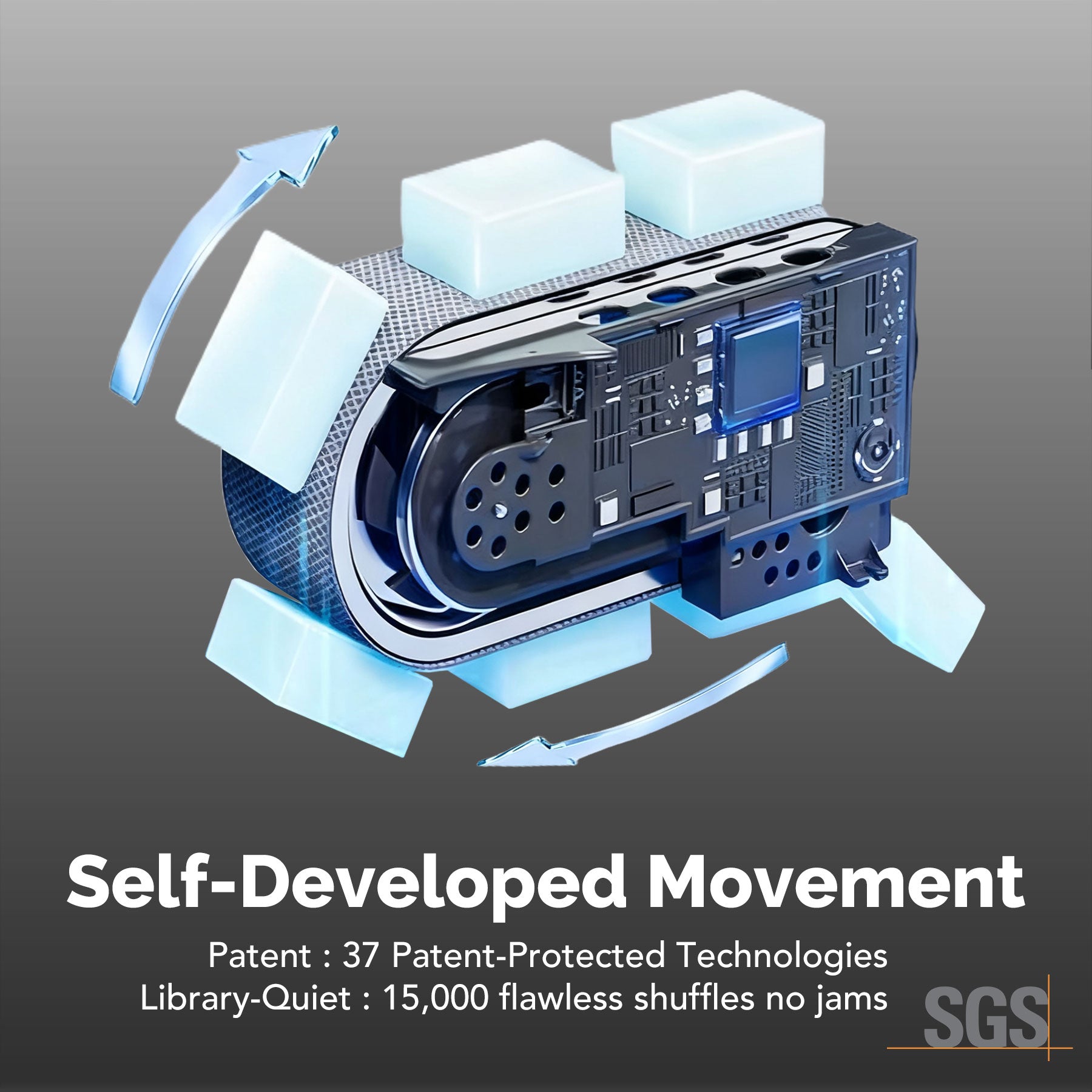 Features a self-developed, library-quiet mechanism certified for 15,000 flawless shuffles with zero jams. Backed by 37 patented technologies and SGS authority for guaranteed, long-lasting performance.
