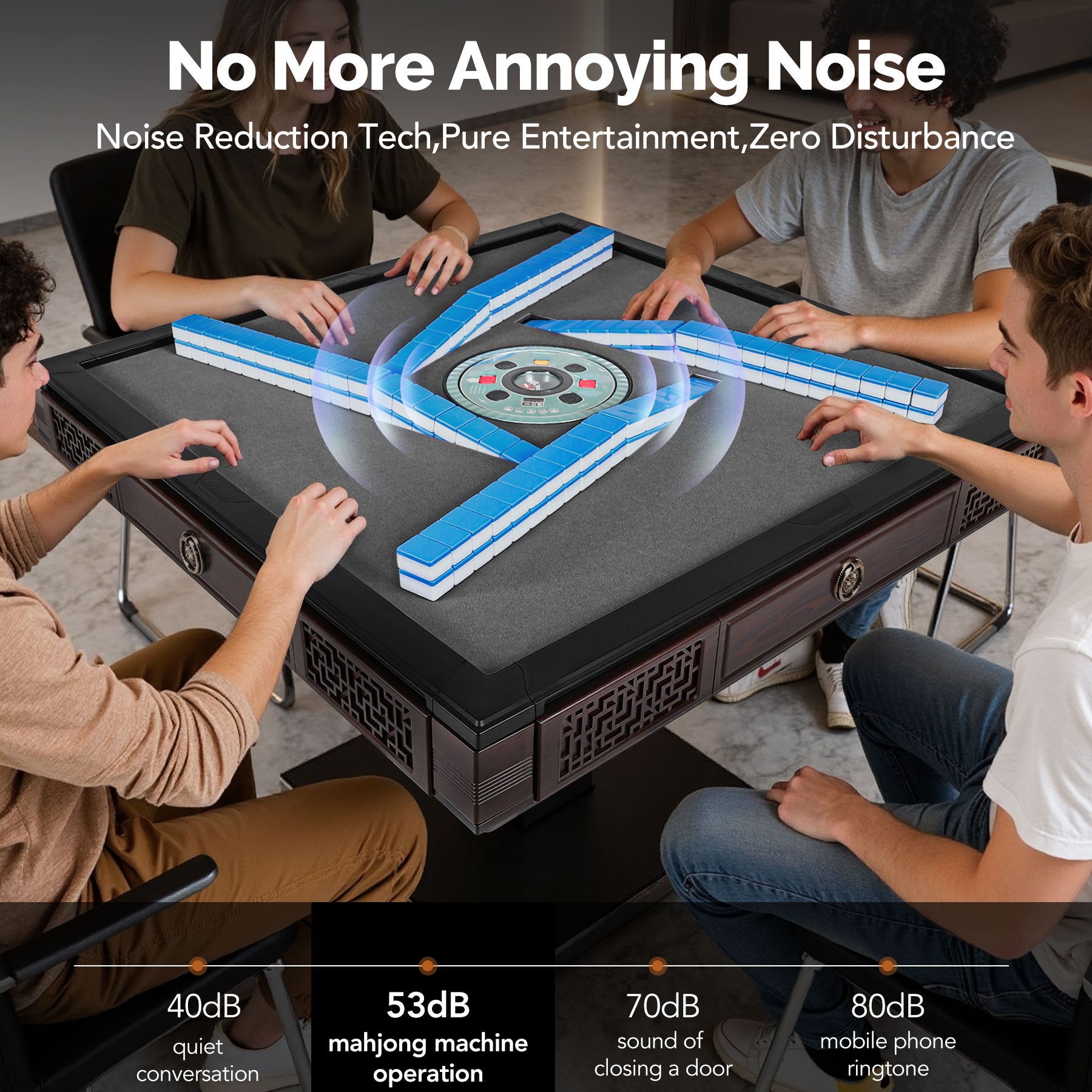 Incorporating an innovative tile-shuffling mechanism that blends classic fun with fresh excitement. Compared to traditional lift-style mahjong tables, it significantly reduces the frequency of tile jams and delays. Free up gameplay space without manual pushing, completely eliminating the risk of items falling into the table. Fitted with silent padding for noticeably enhanced noise reduction—an essential companion for players who value a quiet gaming experience.